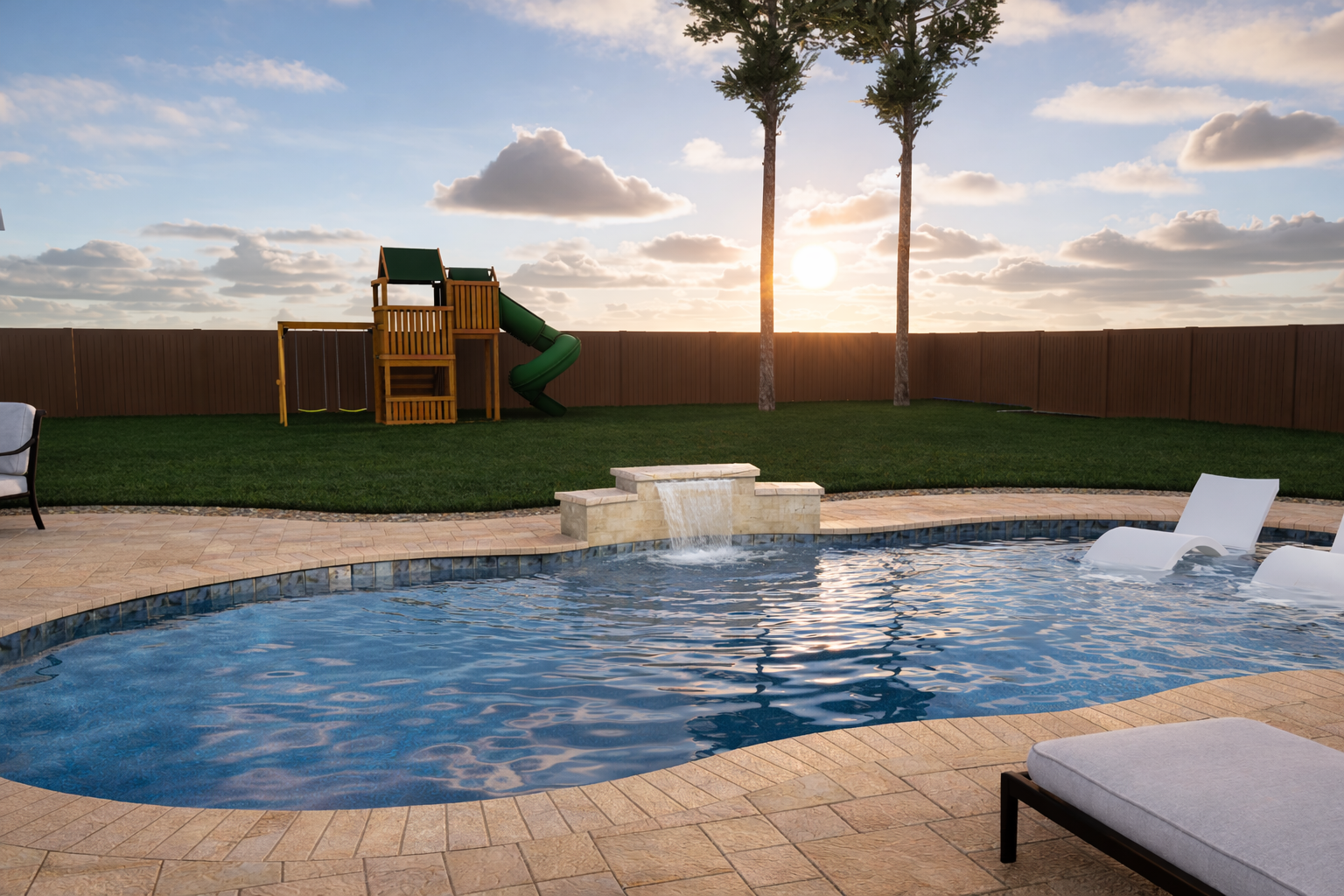 A swimming pool, spa and hardscape designed for the Handlin residence.