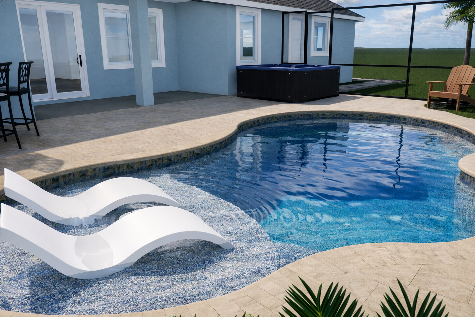 A swimming pool and hardscapes design for the Harmon residence in Ft Walton Beach, FL.